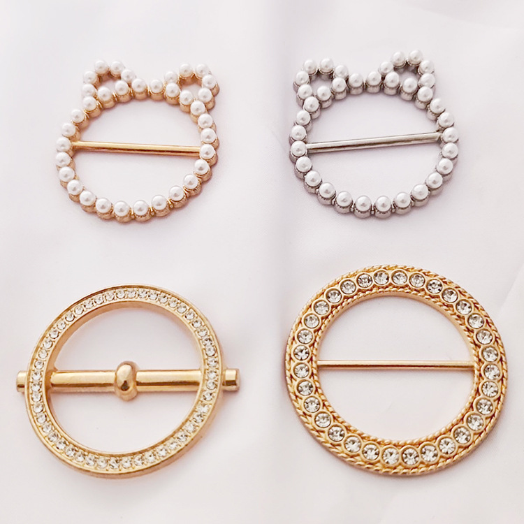 mix fashion design whosale Metal pearl corner buckle Women's T-shirt button buckle ring Silk scarf buckle for  coat belt decorative button